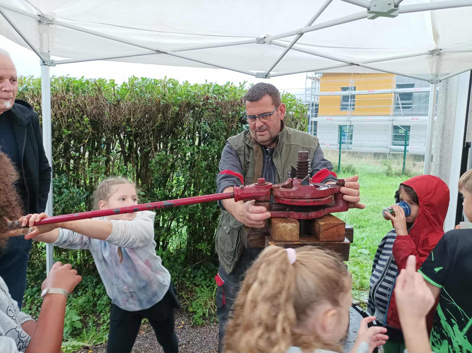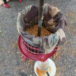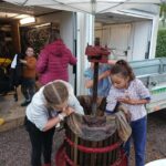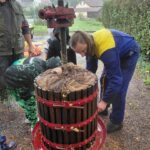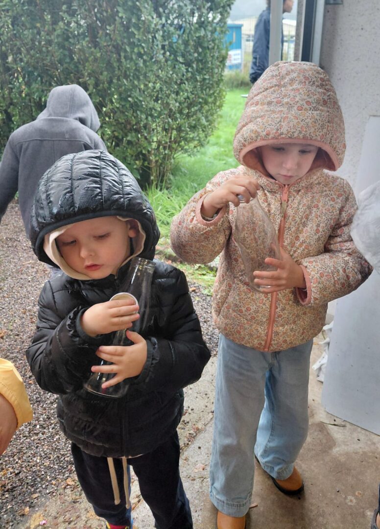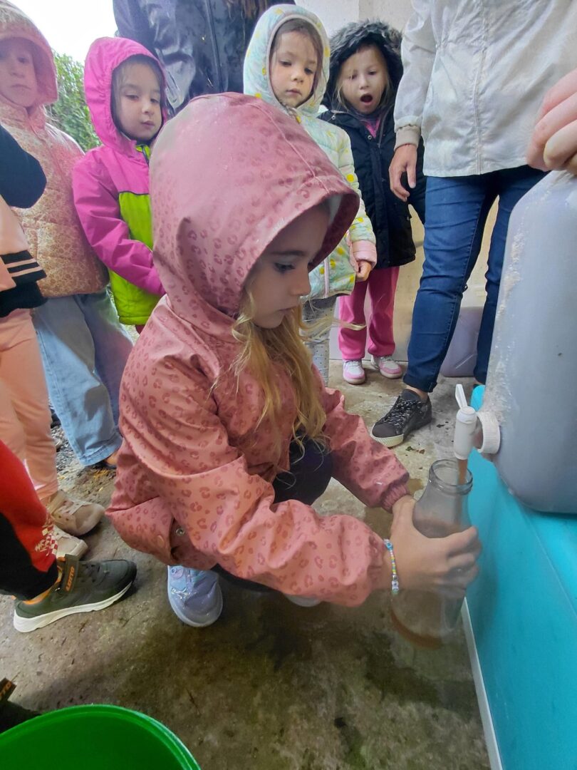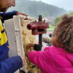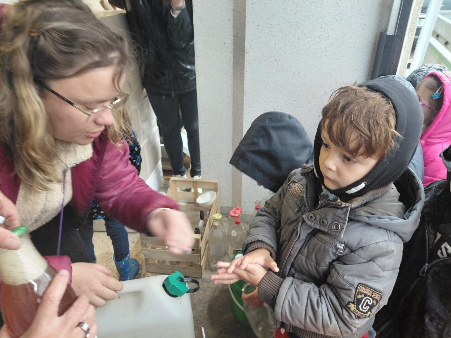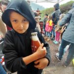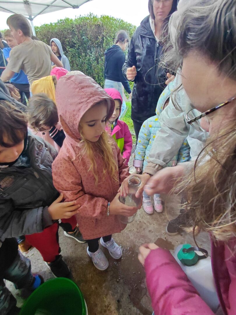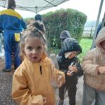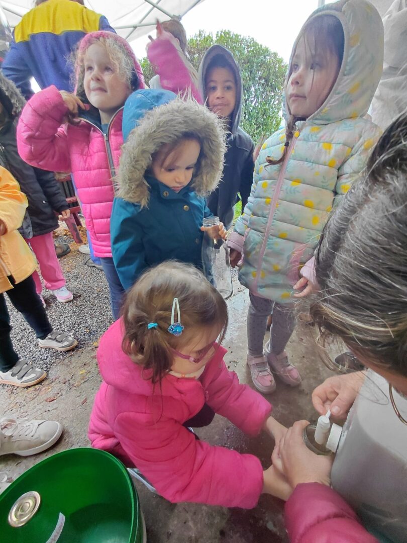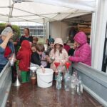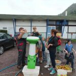 Même sous la pluie, la fabrication du jus de pomme est toujours un plaisir pour les enfants !