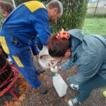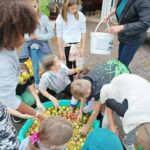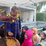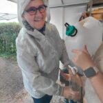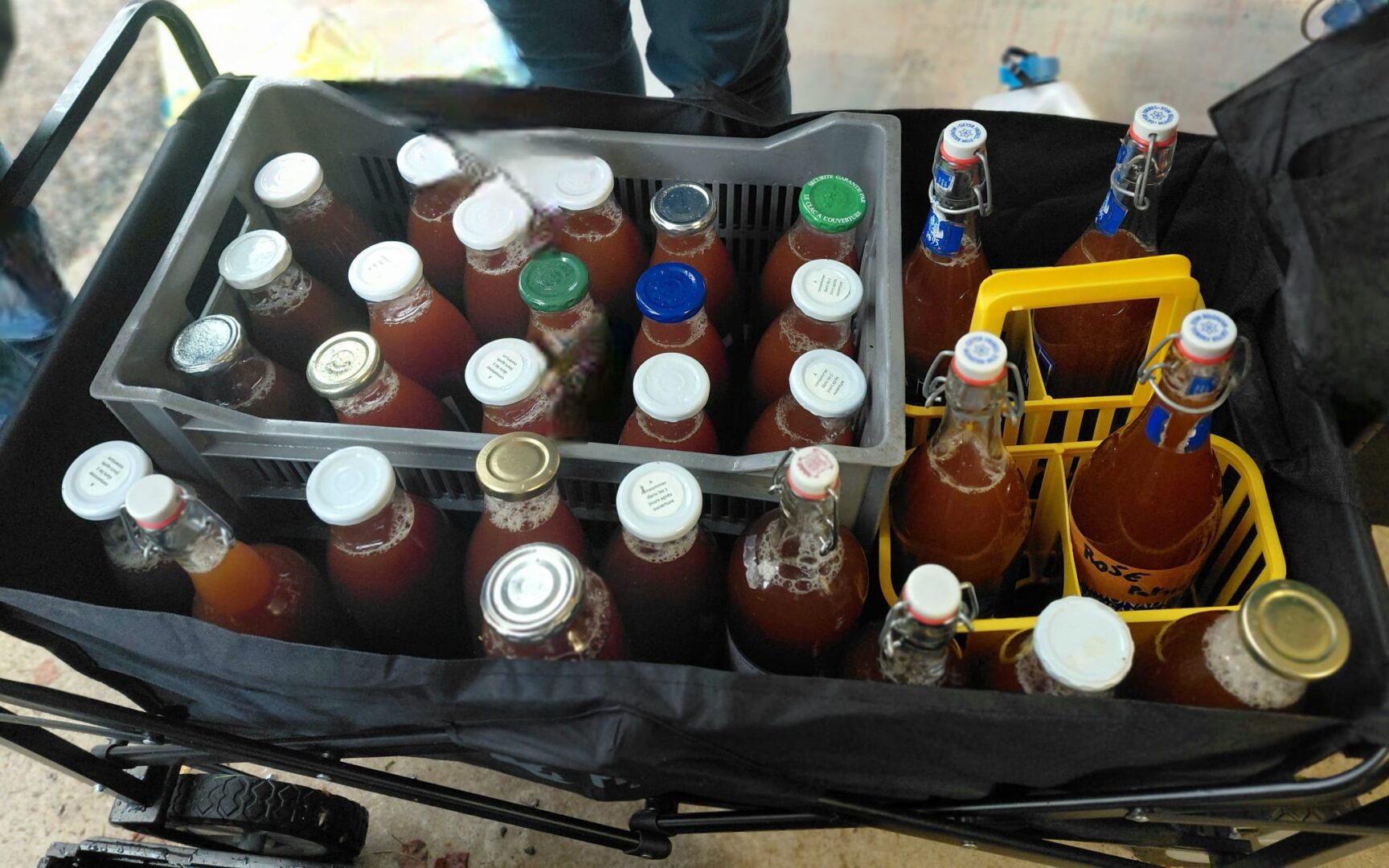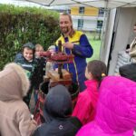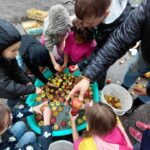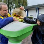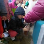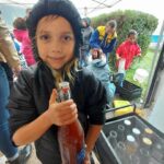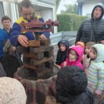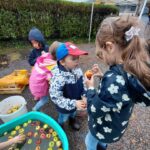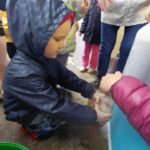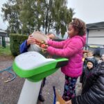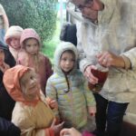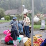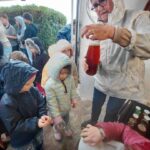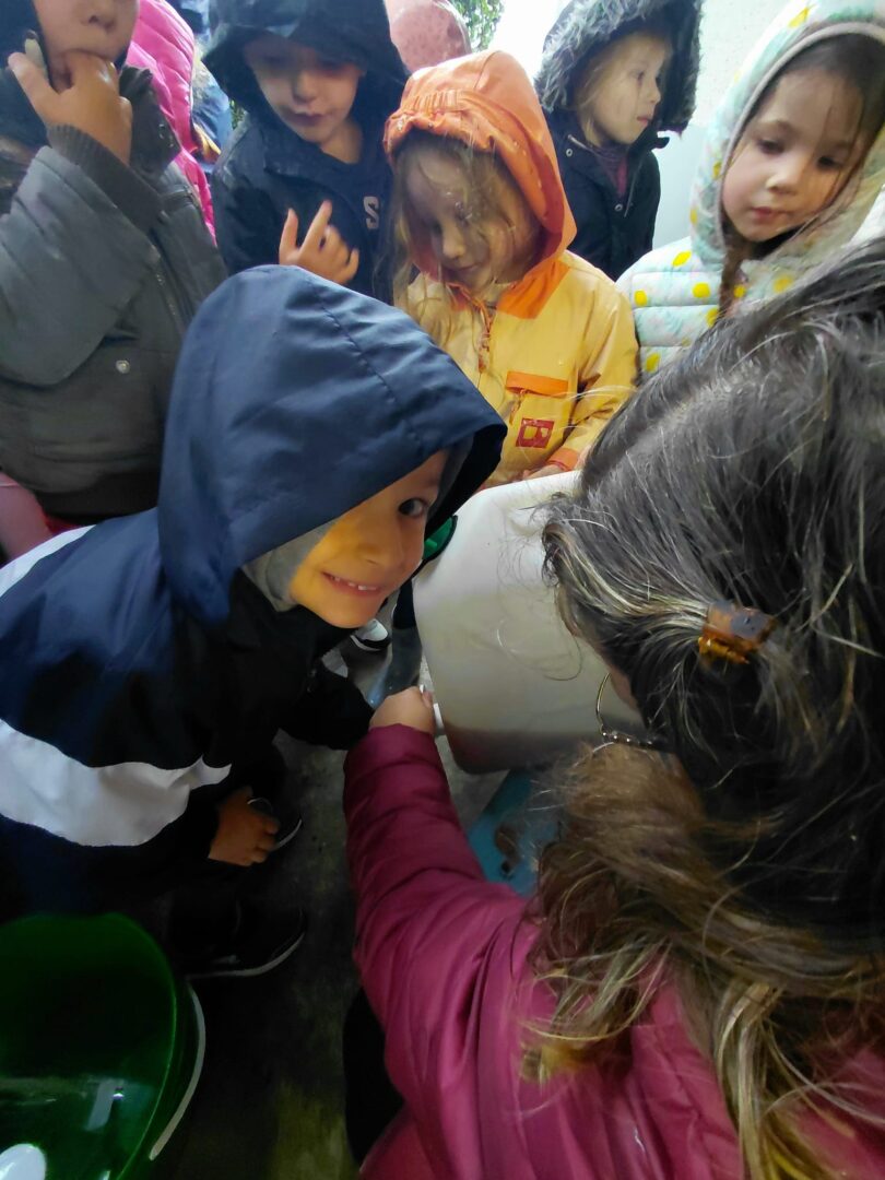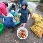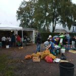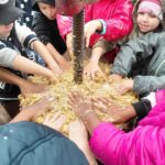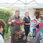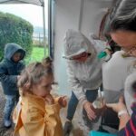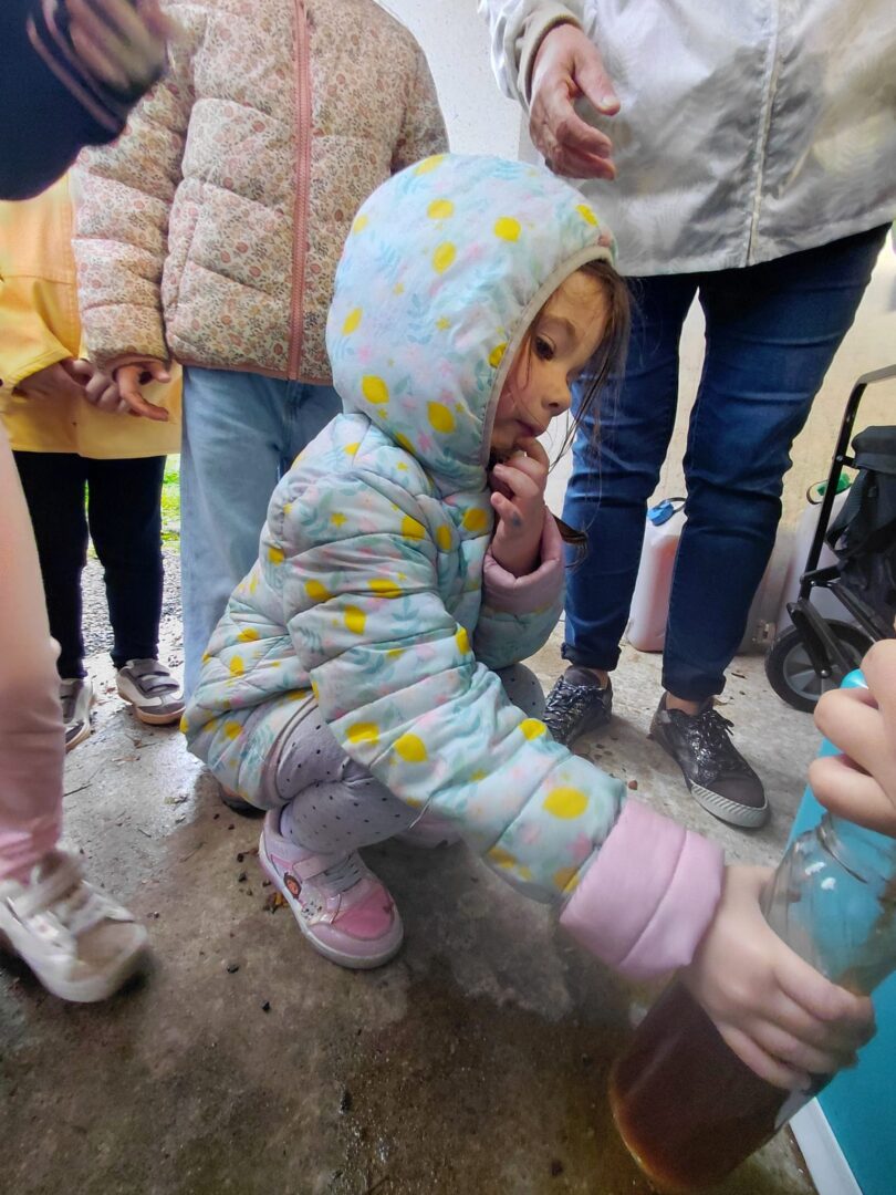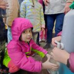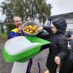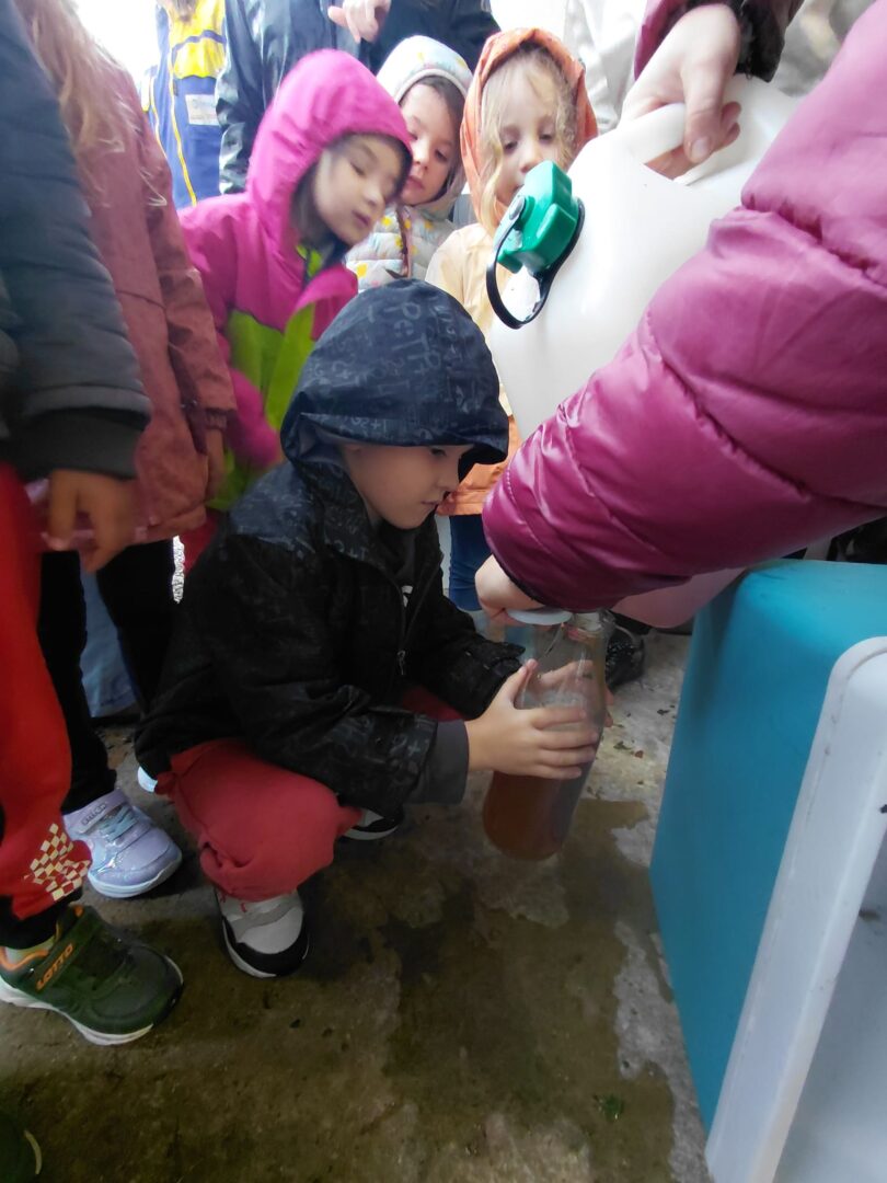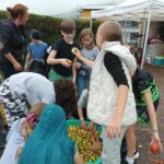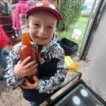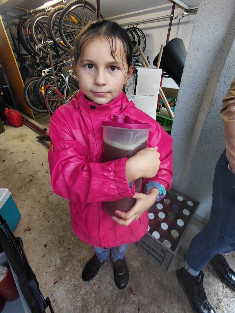 Même sous la pluie, la fabrication du jus de pomme est toujours un plaisir pour les enfants !