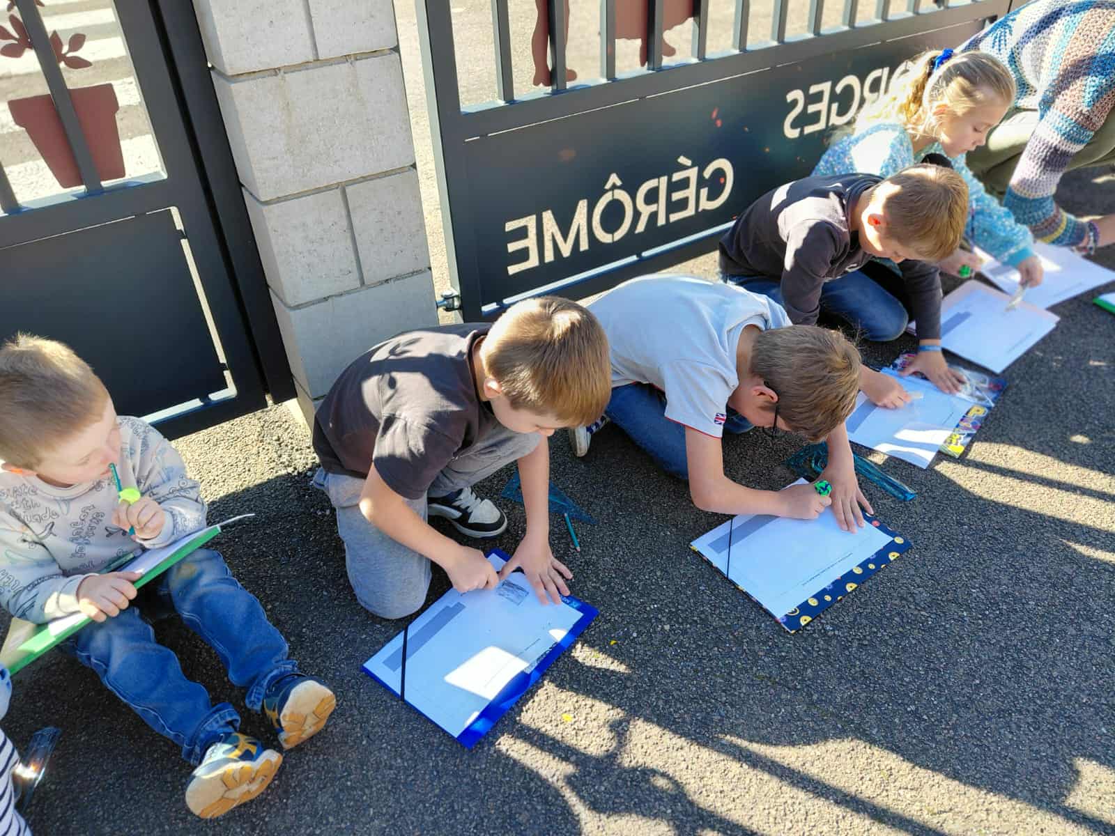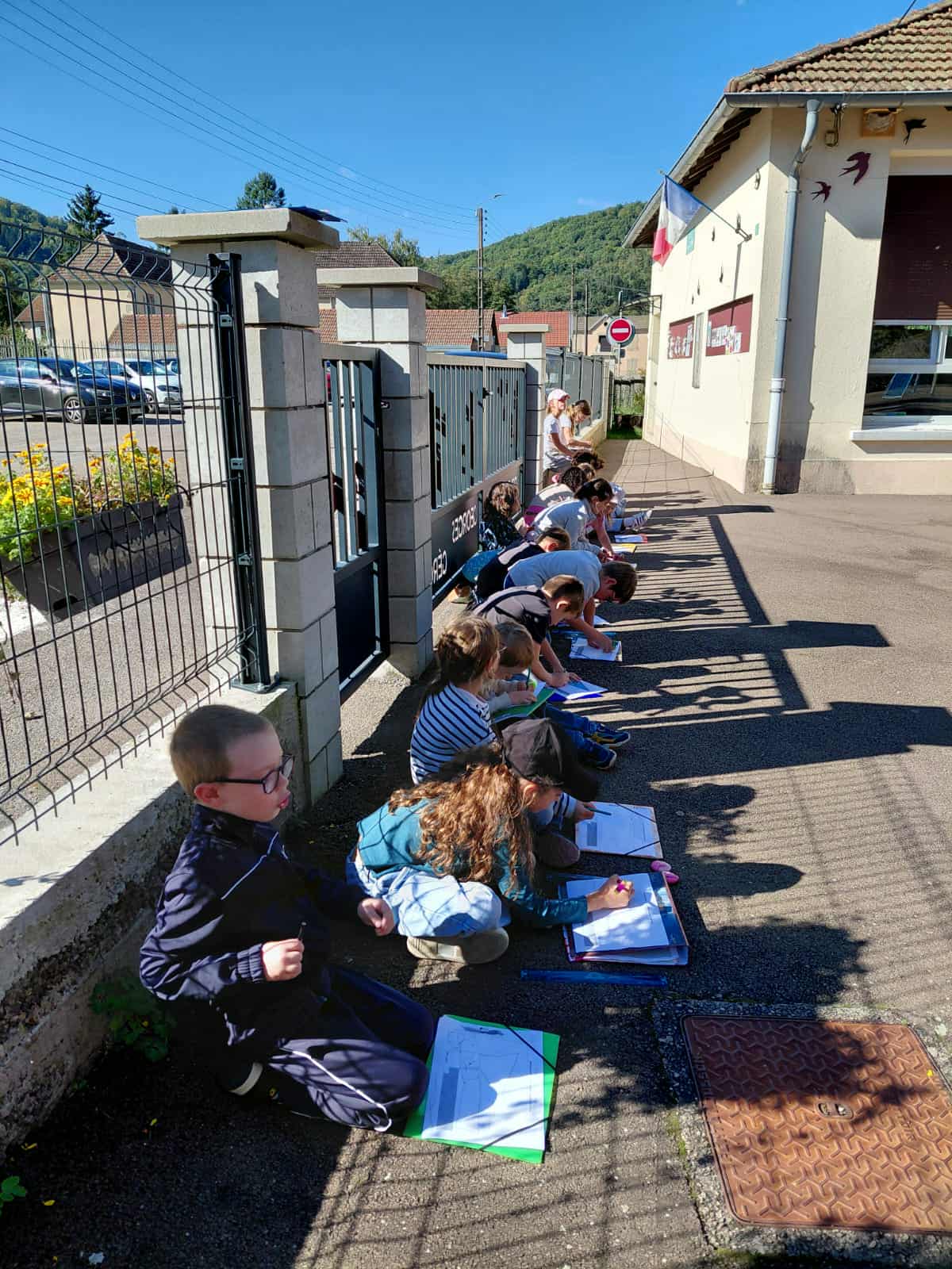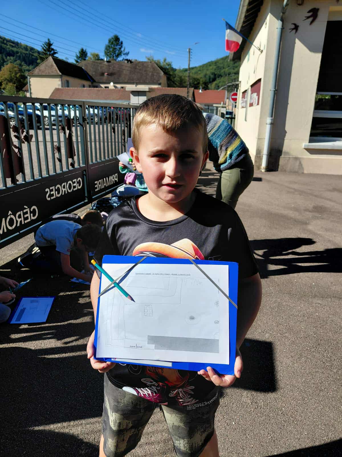 - séance de repérage dans l’espace en extérieur : dessiner le plan de l’école,