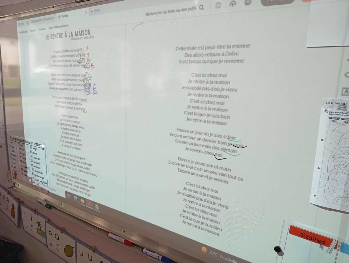 - en musique; écoute et analyse des rimes de la chanson « Je rentre à la maison » de Boulevard des Airs sur laquelle nous travaillons en ce moment.