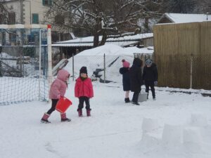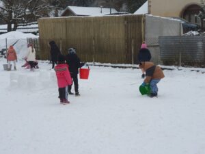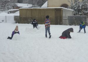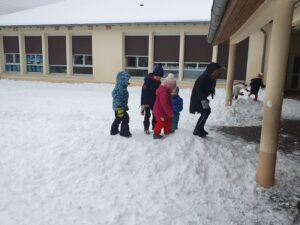 Pour leur plus grand bonheur, les élèves ont fait leur rentrée sous la neige en cette première semaine de janvier : concours de bonhommes de neige, construction d’igloos, bataille de boules de neige et glissades étaient au rendez-vous !