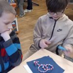 On a essayé de dessiner ça sur les carrés de tissus de notre patchwork de la laïcité.