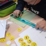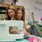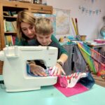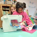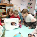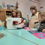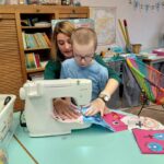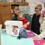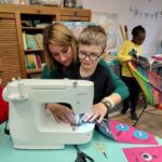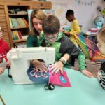 Ensuite on a cousu  les carrés de notre classe ensemble avec maitresse Justine
