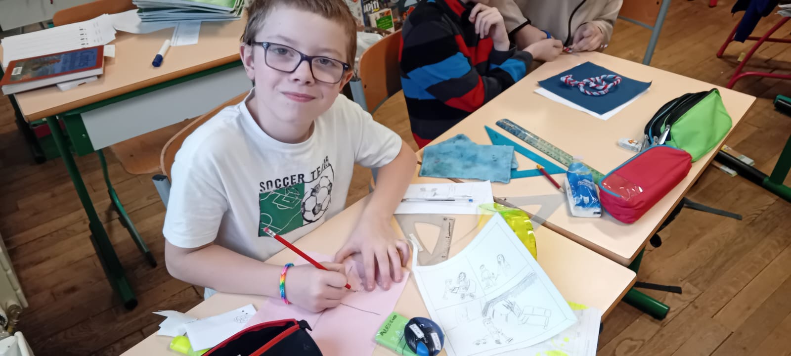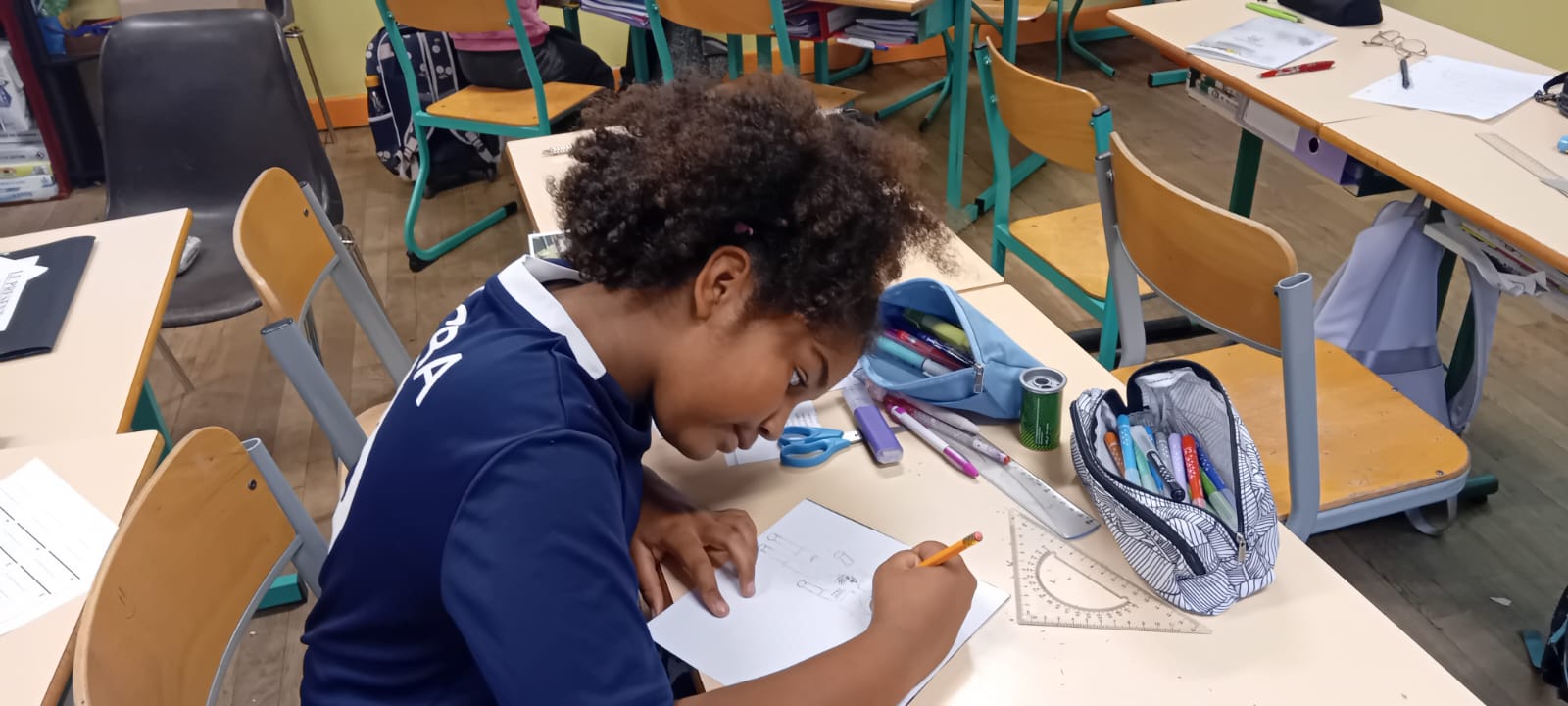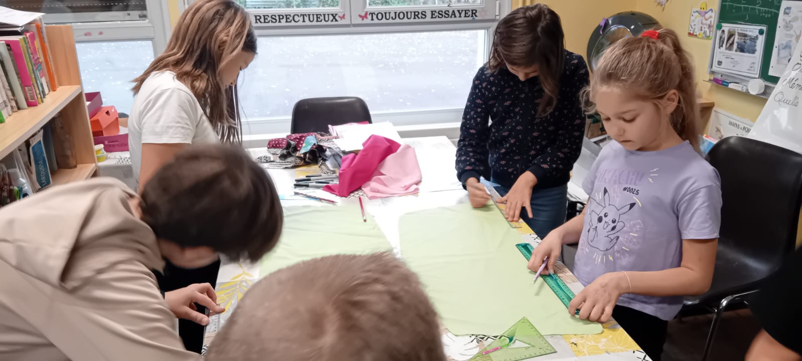 On a essayé de dessiner ça sur les carrés de tissus de notre patchwork de la laïcité.