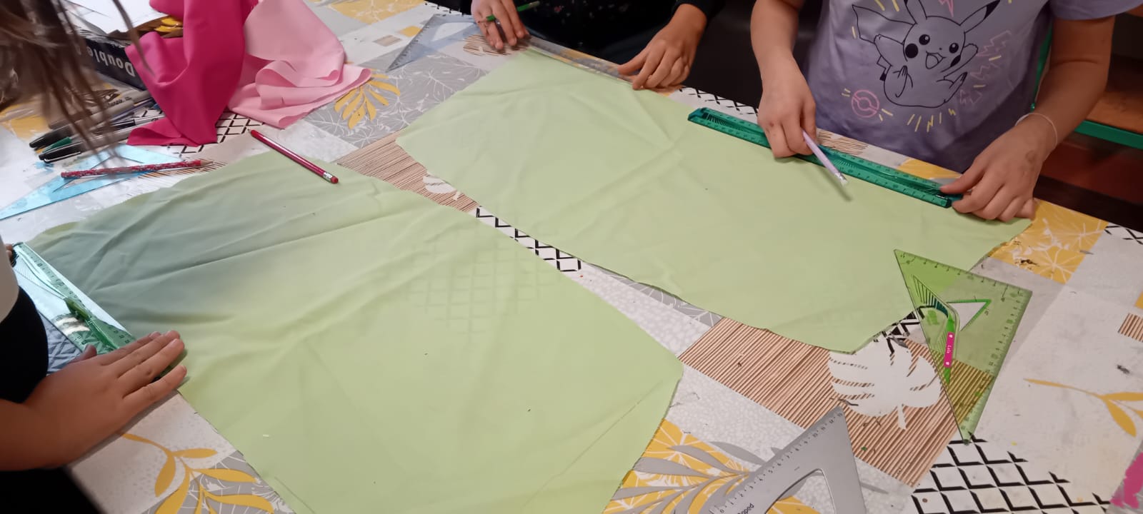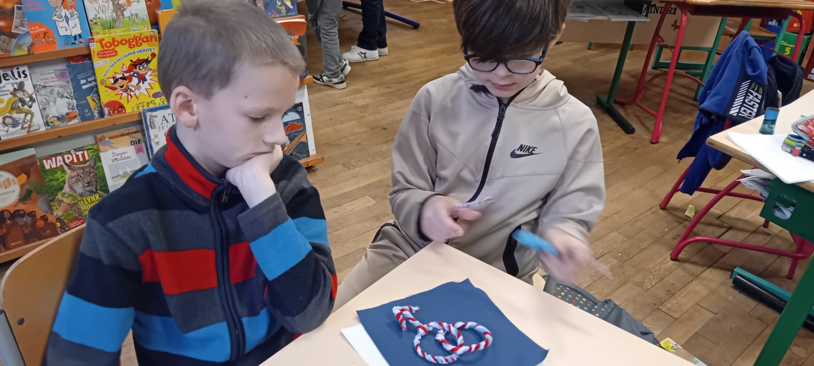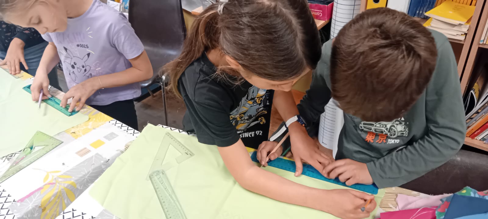 On a essayé de dessiner ça sur les carrés de tissus de notre patchwork de la laïcité.