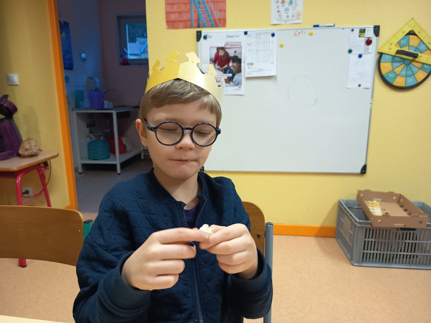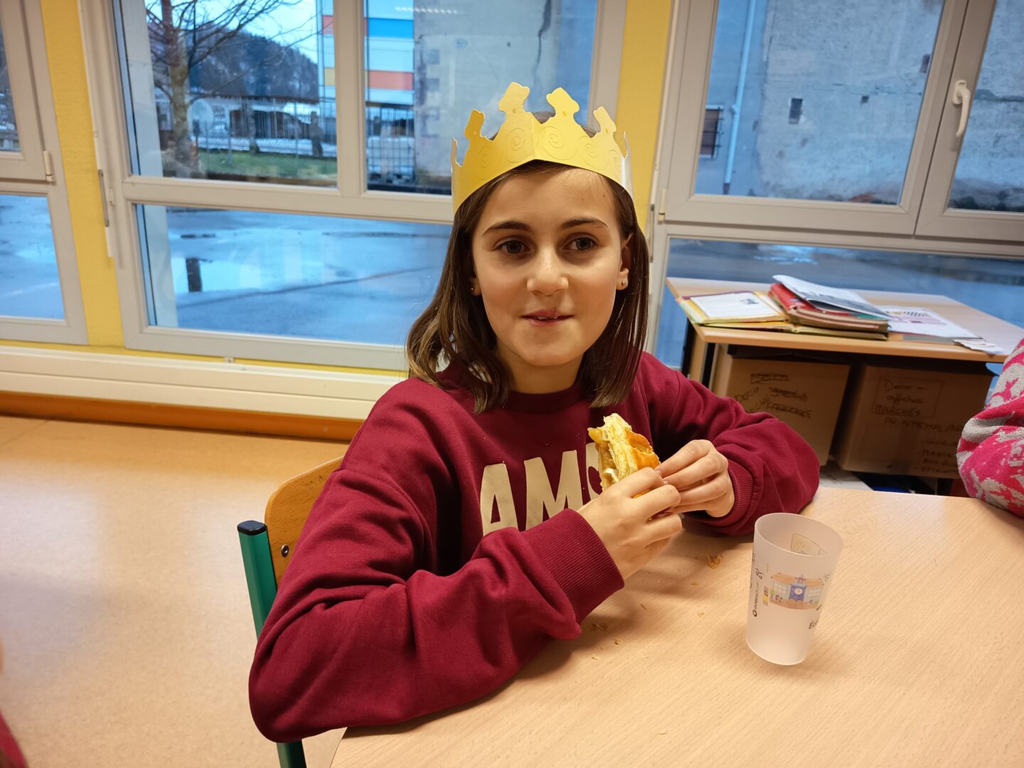 Il y avait quatre couronnes. Ceux qui ont eu les fèves sont Lola , Loïc, Ayden et Enora.