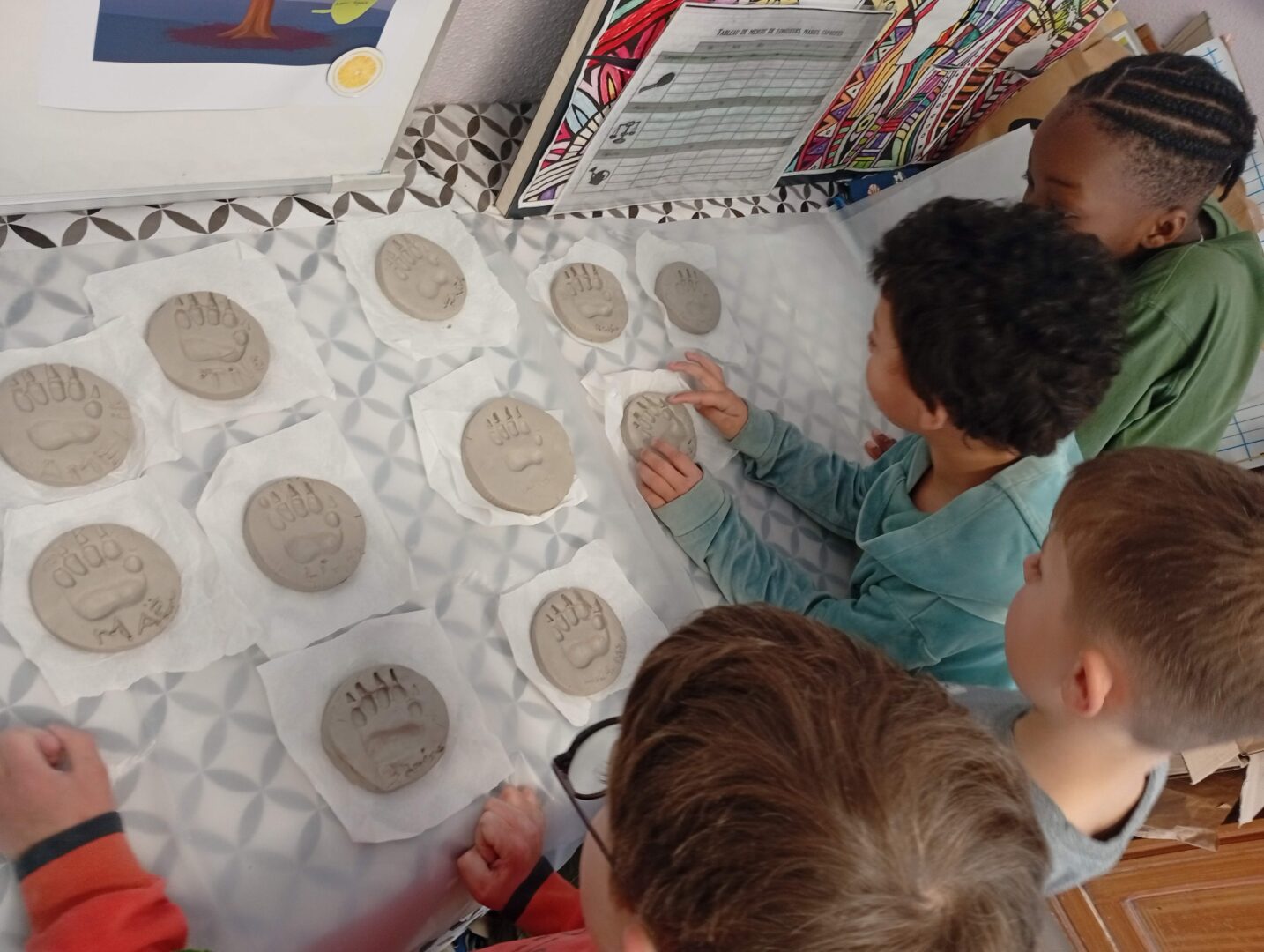• une seconde séance en classe avec l’histoire de Mirabelle la blairelle pour permettre aux élèves de mieux comprendre le mode de vie des blaireaux, et avec une fabrication d’empreinte de blaireau en argile,