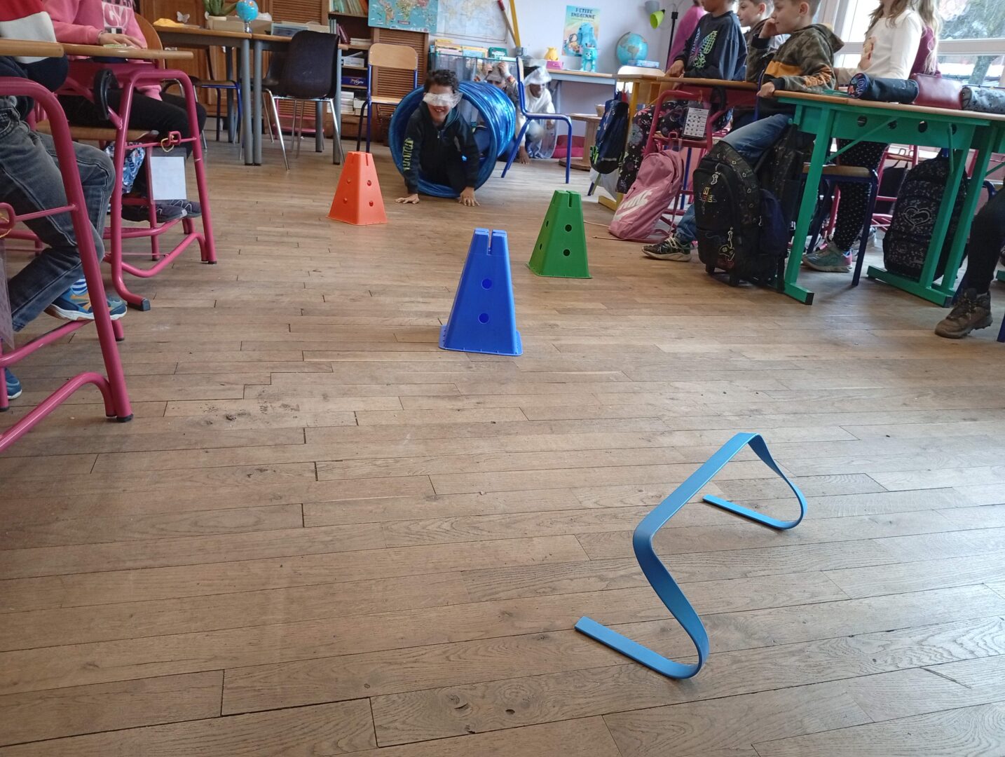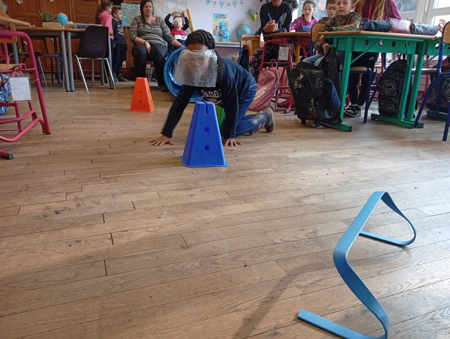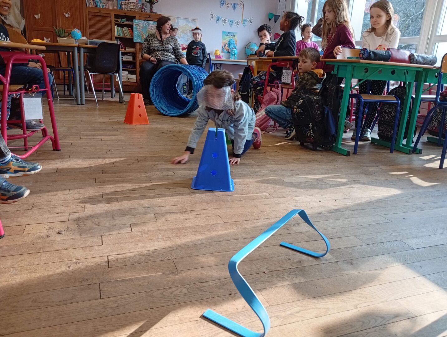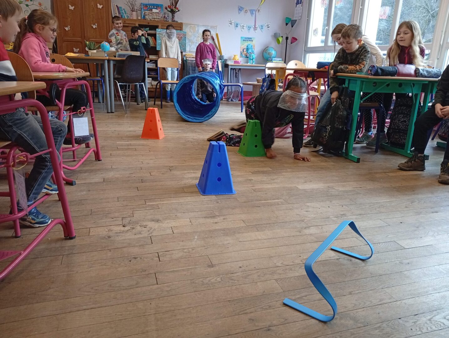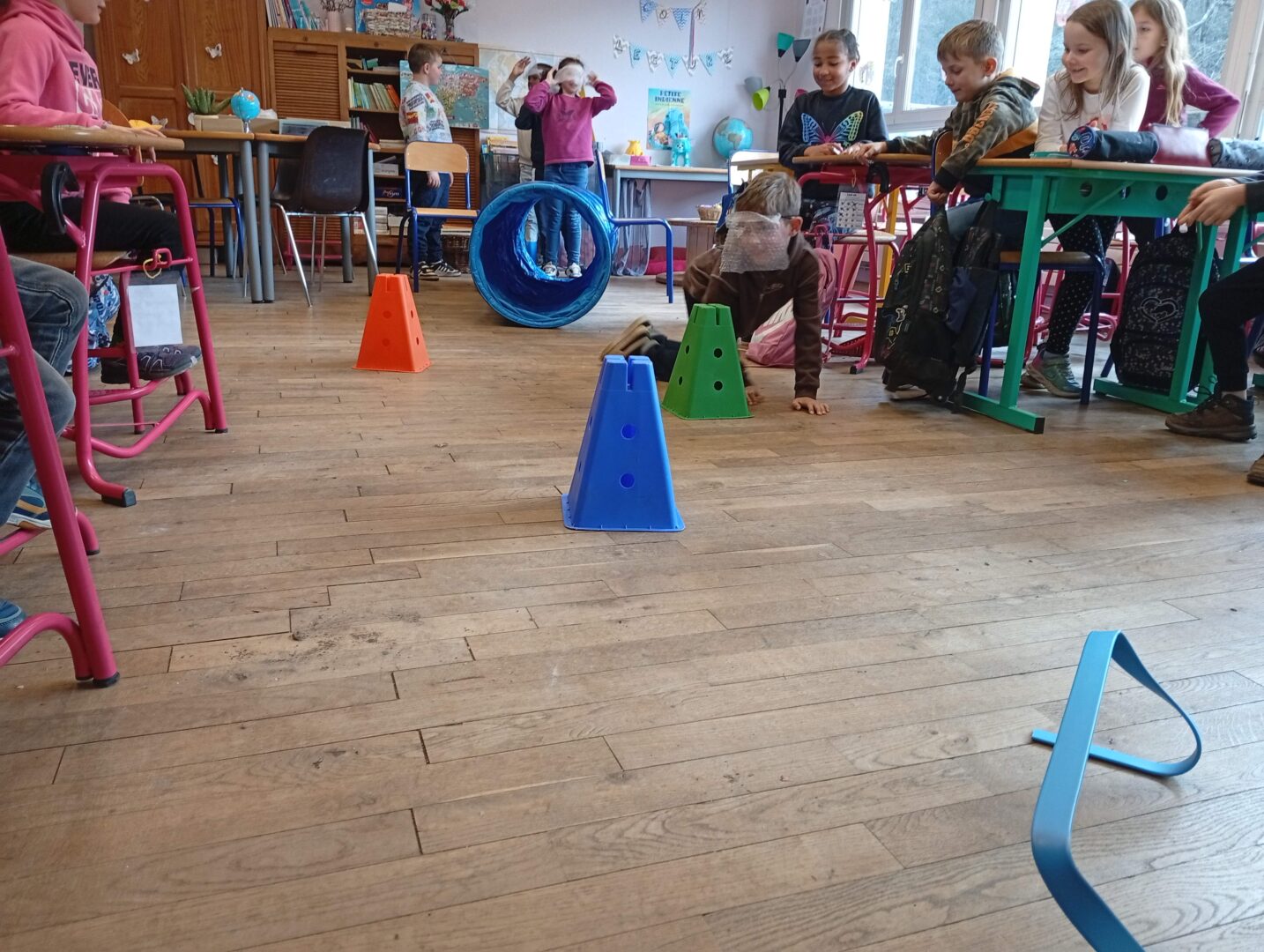 • une dernière séance en classe avec différents jeux autour des animaux de la forêt et un parcours sportif pour se mettre dans la peau du blaireau : passage dans le terrier, vue limitée et recherche de nourriture !