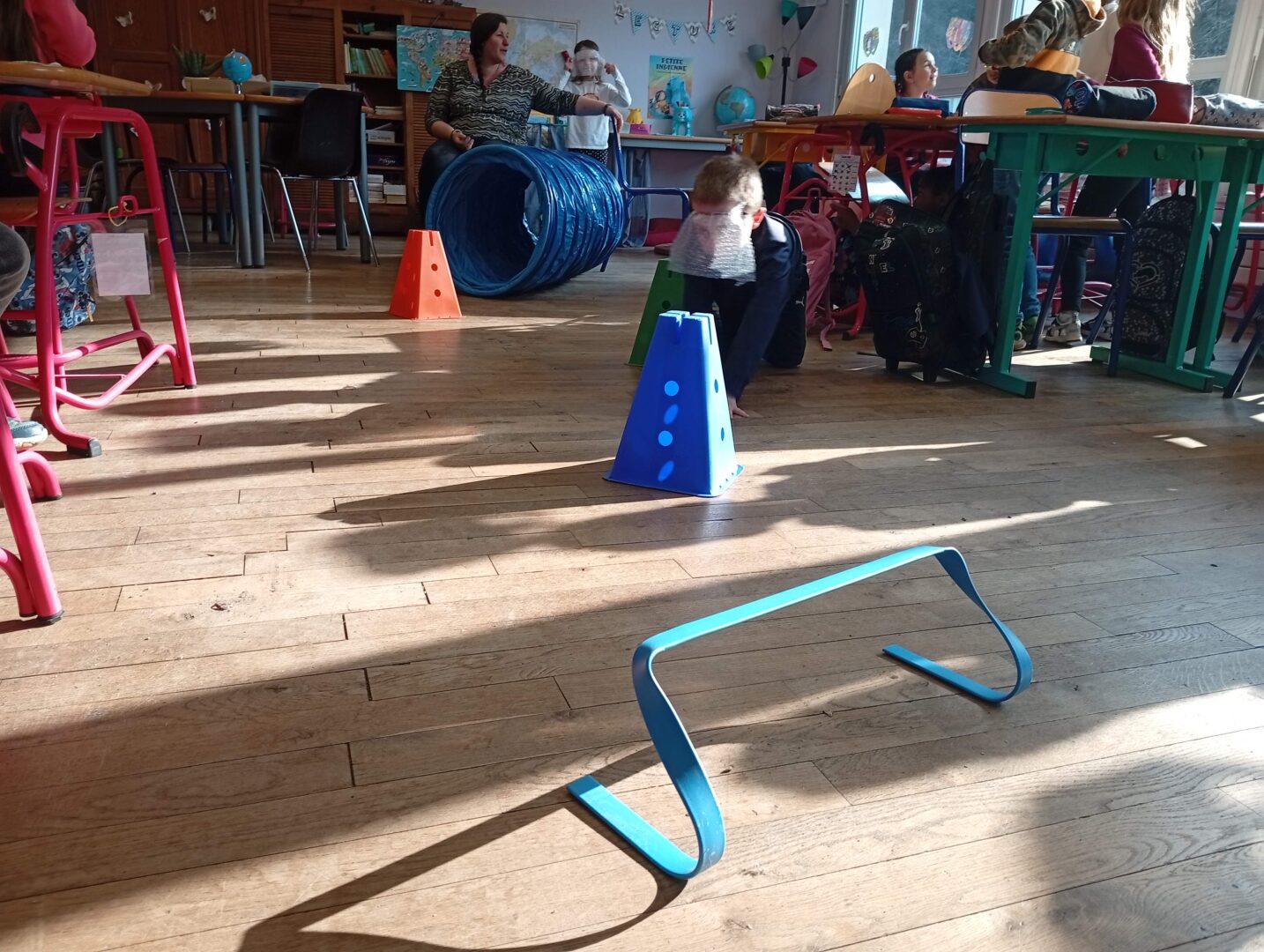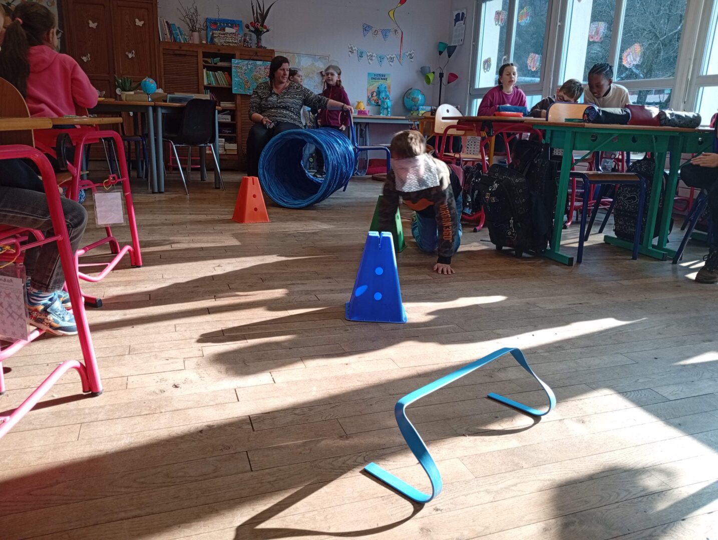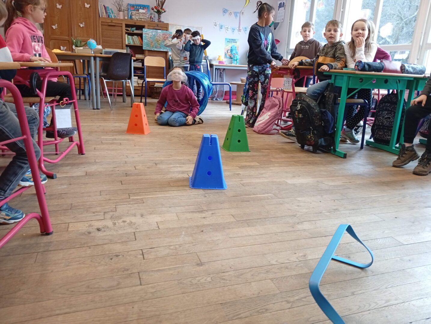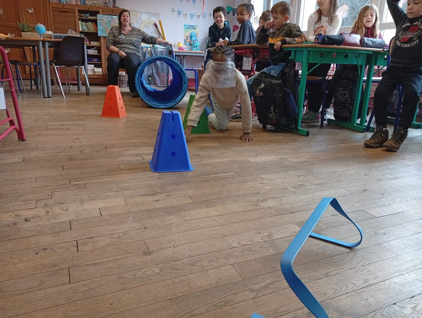 • une dernière séance en classe avec différents jeux autour des animaux de la forêt et un parcours sportif pour se mettre dans la peau du blaireau : passage dans le terrier, vue limitée et recherche de nourriture !