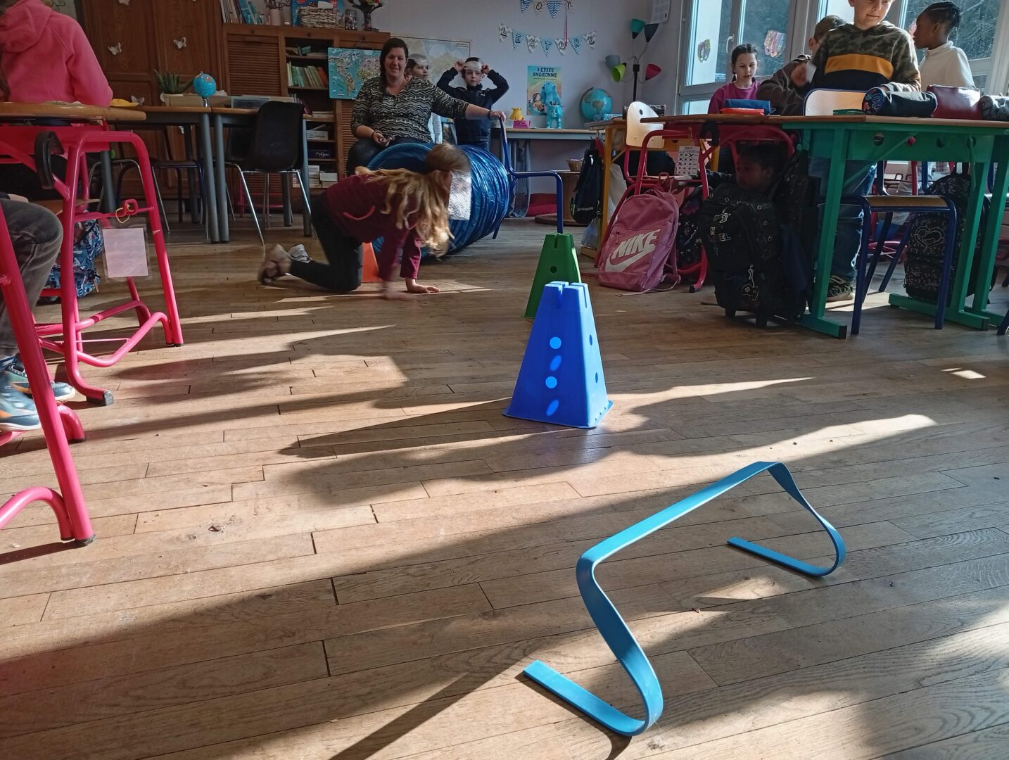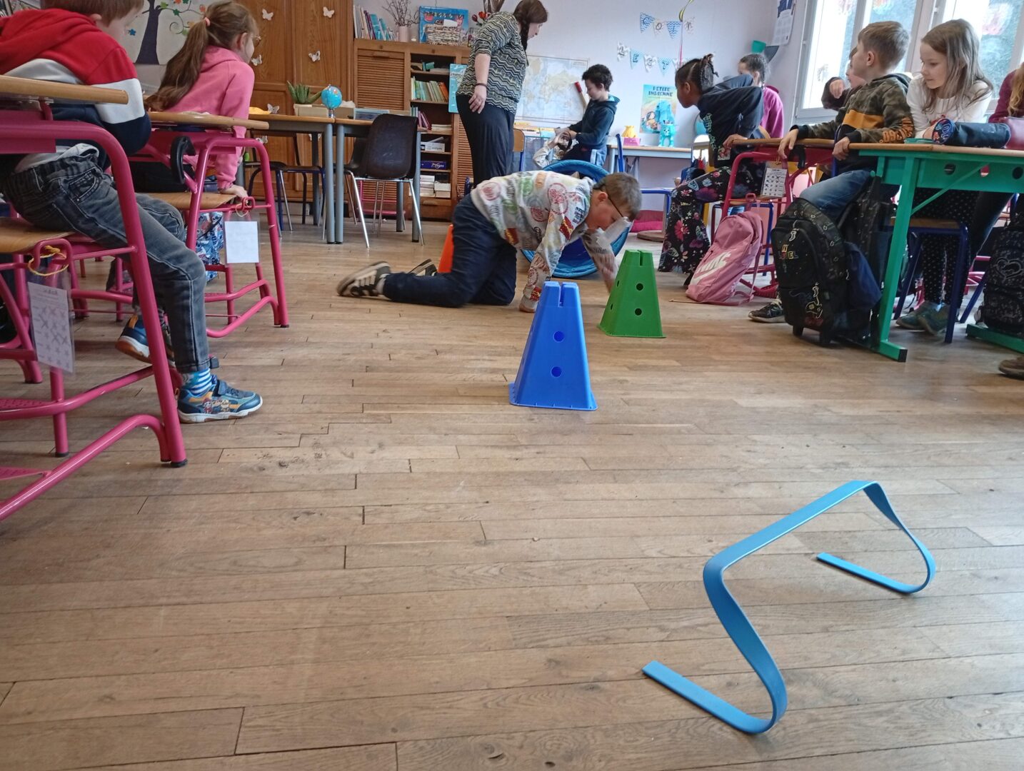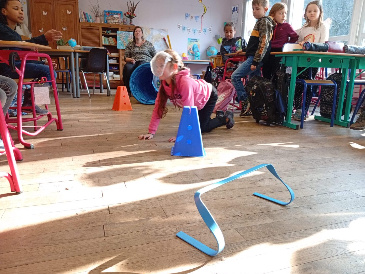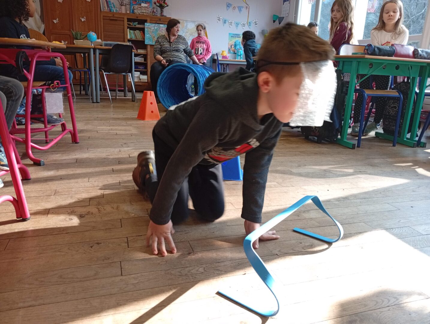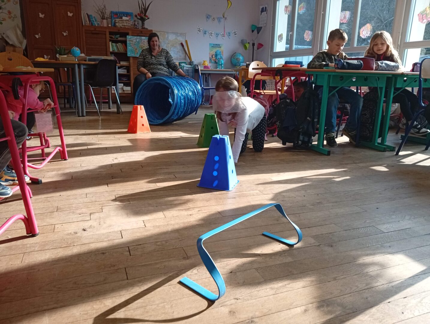 • une dernière séance en classe avec différents jeux autour des animaux de la forêt et un parcours sportif pour se mettre dans la peau du blaireau : passage dans le terrier, vue limitée et recherche de nourriture !