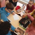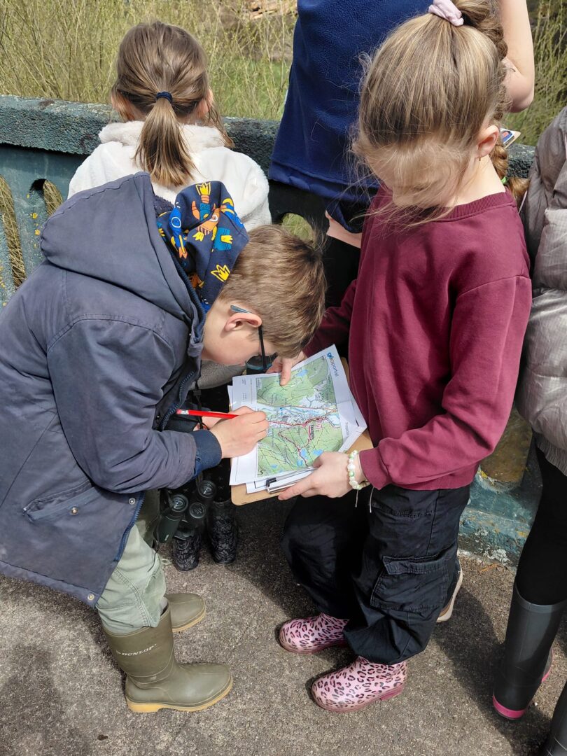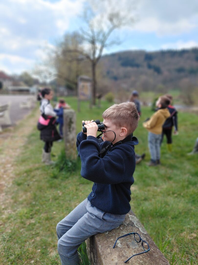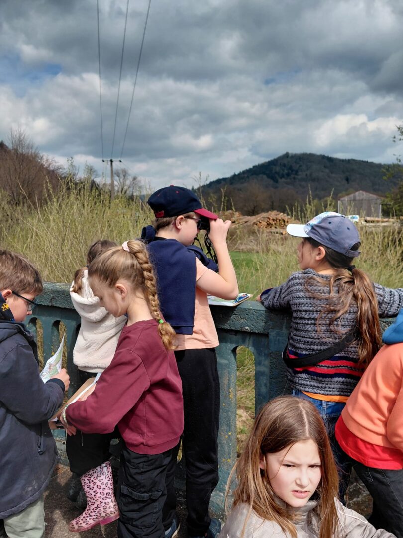 - une dernière séance en extérieur, où les élèves, armés de jumelles et de plans, sont partis au bord de l’eau à la recherche de traces laissées par le castor.