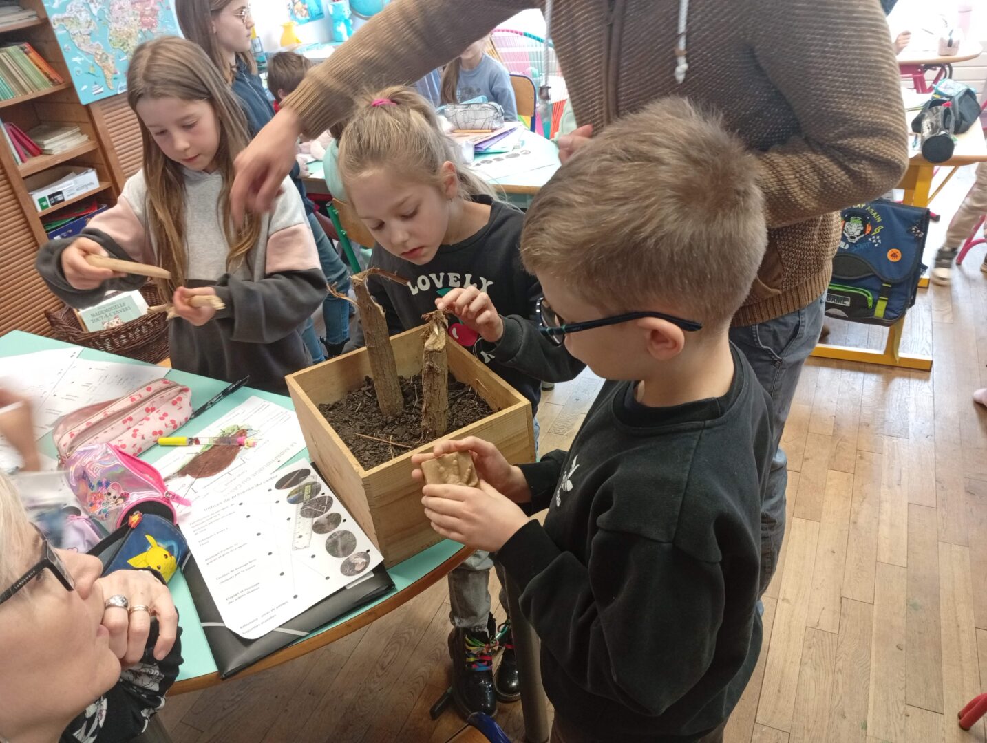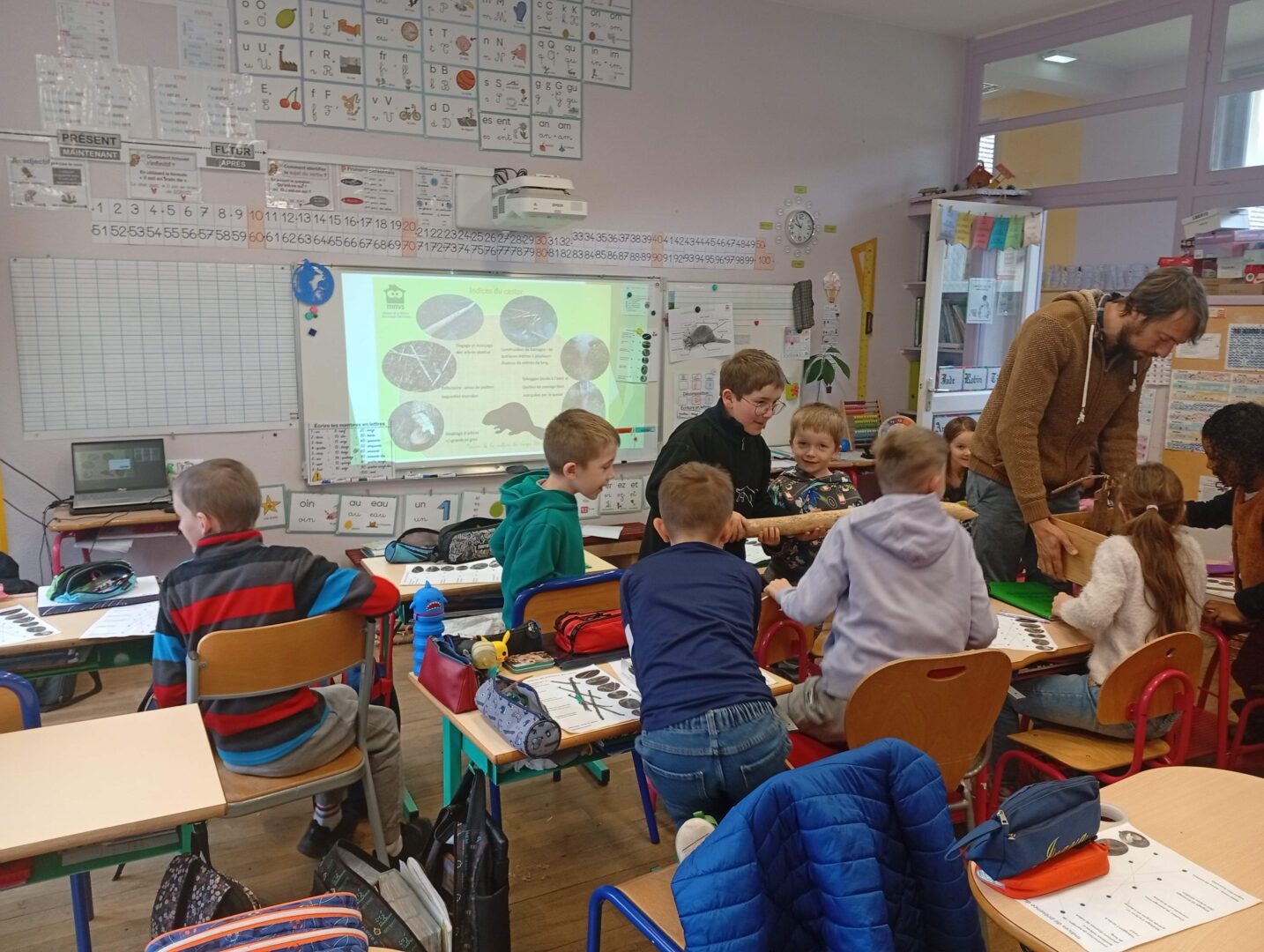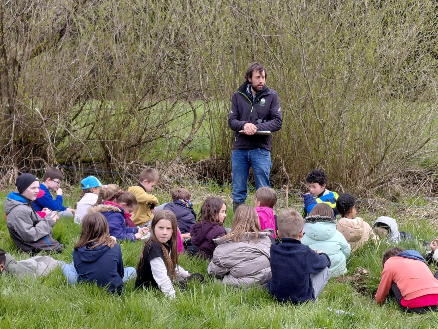 Les élèves du CP au CM2 ont eu la chance de participer à trois séances de découverte sur les mille étangs et les castors, animées par Valentin de la Maison de la Nature.