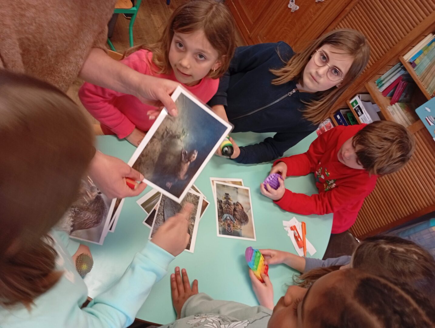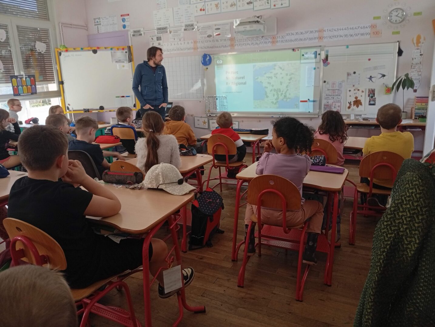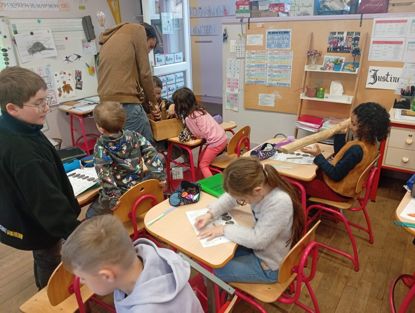 Les élèves du CP au CM2 ont eu la chance de participer à trois séances de découverte sur les mille étangs et les castors, animées par Valentin de la Maison de la Nature.