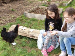 Afin de profiter des températures printanières de ces derniers jours, les CP/CE ont travaillé la lecture dehors ce vendredi après-midi, accompagnés d’une poule qui avait apparemment aussi envie d’apprendre à lire …